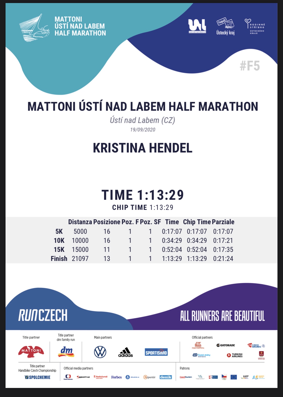 U subotu 19.9.2020. u Češkoj u gradu Usti nad Labem održan je polumaraton u kategoriji Silver label. Hrvatska rekorderka na 3000m zapreke Kristina Hendel ostvarila je pobjedu sa 1:13,29.