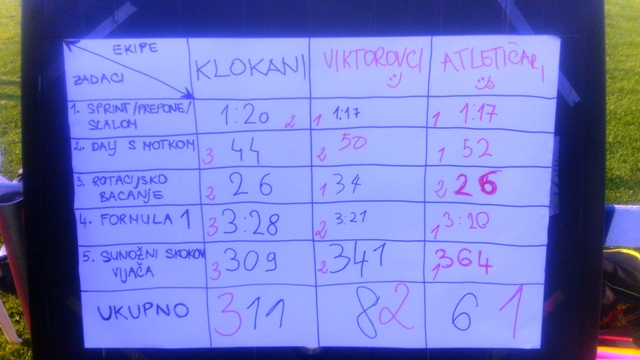 Ekipe su nastupile u 5 za njih prilagođene atletske zadataka. MLAĐI/17 h: sprint/prepone ususretna štafeta, ljestve-dvostruki skip kroz ljestve, plus skakanje-sunožni skokovi u zadano polju, FORULA 1-poligon prepreka, precizno bacanje vortex-a u zadanu zonu. STARIJI/18 h: sprint/prepone/slalom-ususretna štafeta, dalj s motkom-precizni skok udalj s motkom u zadanu zonu, rotacijsko bacanje dječjeg kladiva u zadane zone, FORMULA 1-poligon prepreka, sunožni skokovi preko vijače. Nakon završetka natjecanja zbrojili smo bodove ekipa i proglasili pobjednike ali sva djeca su dobila zaslužene medalje za trud i pokazani natjecateljski duh.