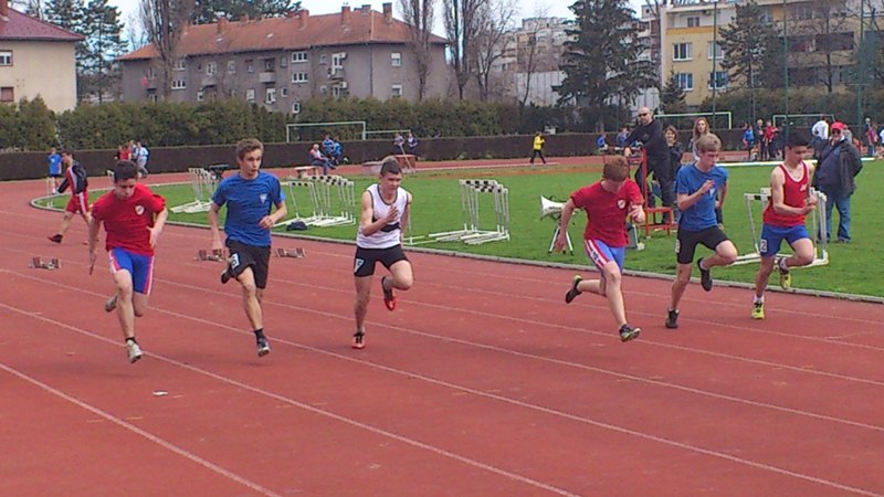 Leo Bilman uvjerljiva pobjeda na 200m 27,29sec. za ml.kadete, Marin Fabijanić i Tvrtko Baudoin 2. na 400m 61 sec.