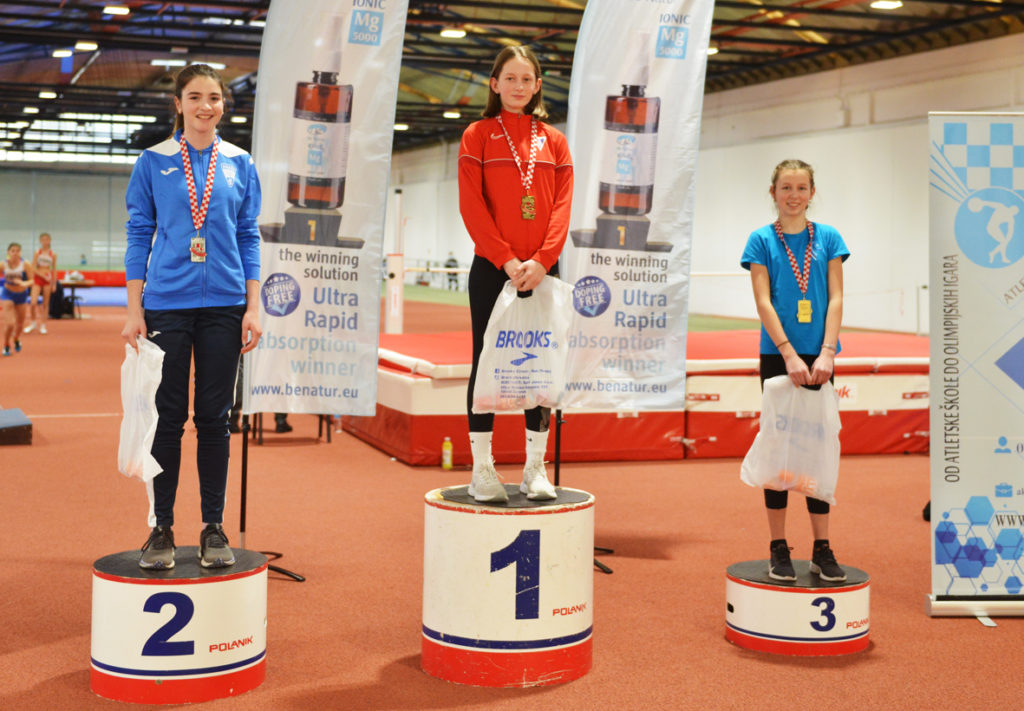Završeno je najmasovnije Prvenstvo Hrvatske u dvorani za mlađe kadete i kadetkinje. Ukupno 400 natjecatelja i 40 klubova natjecalo se za što bolje plasmane i rezultate. Bilo je ponovo neizvjesno, uzbudljivo, emotivno i borbeno do kraja. Lijepo je bilo vidjeti naše mlade članove u novoj opremi kako trče, skaču i bacaju, te se međusobno gromoglasno bodre za svaki cm ili stotinku sekunde. Takva dobra atmosfera iznjedrila je 6 medalja od toga po 2 zlata, 2 srebra i 2 bronce. Kao klub smo u ukupnom poretku drugi . Čestitke svima. Svi su gotovo napravili svoje najbolje rezultate i pokazali su da se na njih može računati u budućnosti.